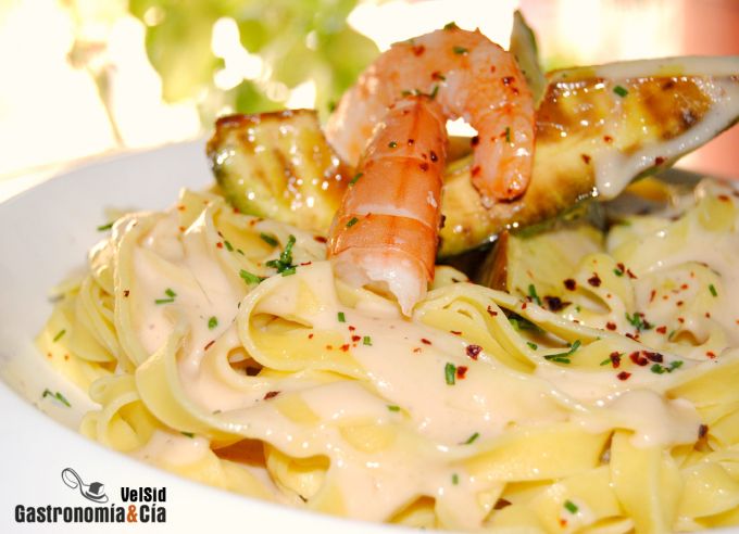 Aunque a algunos nos pueda sorprender, a muchas personas les gusta, sobre todo a quienes el aguacate fresco no les dice mucho, paladares que disfrutan con sabores bitters seguro que agradecerán estos Tallarines con langostinos. Nuestra recomendación es que antes de incluir el aguacate en el plato, incluso antes de gastar un aguacate entero haciéndolo a la plancha, es probar una porción y después valorar su inclusión en el plato. Si no os gusta, sin ningún problema, elaborar esta misma receta y añadir el aguacate crudo u omitirlo. La salsa que baña esta pasta está exquisita, unos carnosos langostinos la hacen aún más rica, así que… ¡a la cocina!