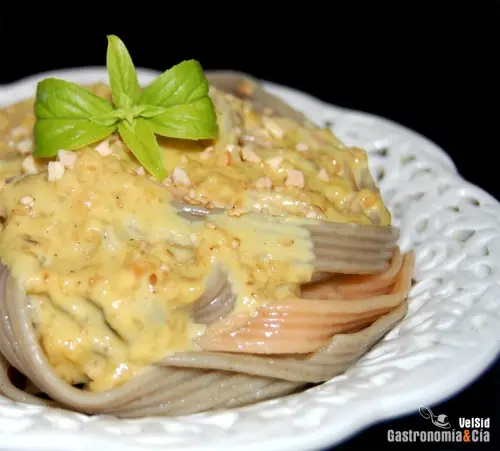 En cuanto a la pasta, en esta receta hemos utilizado fetuccini de pimiento y fetuccini de ajo y albahaca, pero si no tienes estas variedades de pasta puedes hacer el plato con la pasta que prefieras, con esta salsa cualquier tipo de pasta larga va muy bien.