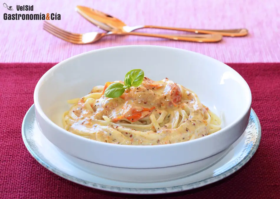 Cada semana podéis encontrar en Gastronomía y Cía varias recetas fáciles y deliciosas que os permiten disfrutar de la comida casera aun teniendo poco tiempo para cocinar. Y es que, hay quien prefiere la comida recién hecha en lugar de tener que prepararla con antelación, y mucho menos con el ‘batch cooking’ que tan de moda se ha puesto, con el que se comen platos cocinados cuatro y cinco días antes. Hacer esta receta de Tallarines con salsa de nata, anchoas y tomates cherry no os llevará más de 15 o 20 minutos, la verdad es que merece la pena emplearlos, pues es una receta de pasta sencilla pero muy sabrosa.