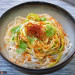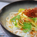 Sirve en platos hondos o en cuencos los tallarines de arroz, sobre ellos coloca los tallarines de calabacín, y a continuación reparte unas hojas de cilantro, unas semillas de sésamo tostadas, un poco de ito togarashi y para terminar, adereza con la salsa oriental. Sirve enseguida y ¡buen provecho!