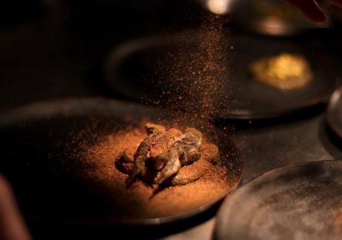 Este año el cocinero filipino estuvo en Madrid Fusión mostrando su estilo y filosofía de cocina, y hoy podemos ver una de sus recetas, se llama Tamban, sardina, para que nosotros lo entendamos. El pescado va rebozado y frito después de ensartarlo en unos palillos, y se acompaña de ingredientes entre los que podemos ver algunos conocidos y otros no tanto, como las hojas de moringa, con ellas hace un aceite. También elabora una salsa con distintos tipos de maíz, tomate en polvo con pimienta de Sichuan… en fin, lo mejor es pasar a ver la receta de Tamban (Sardina) de Jordy Navarra.