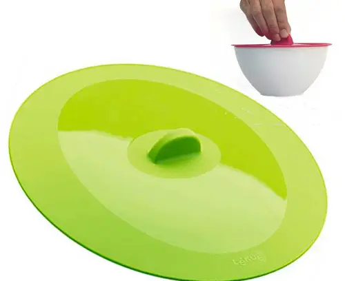 Esta tapa de silicona se adapta perfectamente a los recipientes de distintos materiales, como cristal, metal o cerámica, y nos sirve para calentar alimentos en el horno o en el microondas evitando las salpicaduras y la evaporación de los jugos, para tapar un recipiente que queramos guardar en el frigorífico o en el congelador, proporciona mucha seguridad, ya que nos garantiza que no adoptará olores y sabores de otros alimentos.