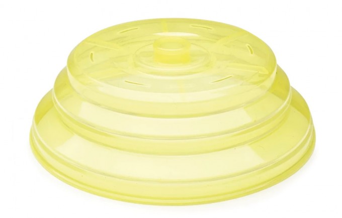 Hemos visto escurridores, coladores, embudos, fiambreras, repisas de drenaje, hervidores de agua, mandolinas, soportes, tapaderas, picadoras de media luna, batidores de mano… Lo que veis en la foto que ilustra estas líneas es una tapa para microondas plegable, y hay que decir que también habíamos hemos conocido algunas anteriormente, como esta de una firma italiana.