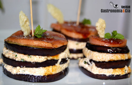 Asar la berenjena en la parrilla, pelar y emulsionar con el resto de ingredientes. Poner a punto de sal y reservar en una manga pastelera.