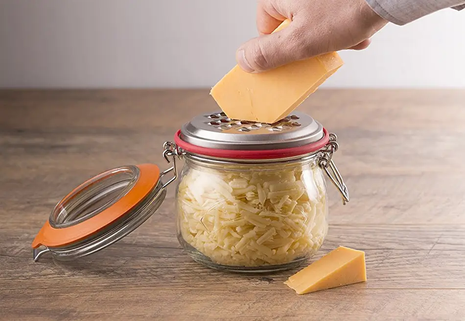 Lo bueno de incorporar un rallador a un tarro de conservación es que no tienes que ensuciar otro cacharro para que caiga lo que estás rallando, y que el alimento se puede conservar en el recipiente en el que se ha rallado y en el frigorífico, para tenerlo siempre a mano y en perfecto estado, casi como recién rallado. Encantará a los amantes del queso rallado sobre todas las comidas, son más de los que muchos podáis pensar.