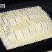 Hemos utilizado el hojaldre fresco del Lidl que es rectangular, si tenéis el mismo hojaldre, de una placa salen para tres tartas, para la cuarta hay que tomar una porción de otra placa. Así que divide la primera placa en tres rectángulos y corta un cuarto rectángulo del otro hojaldre. Seguidamente corta cada rectángulo por la mitad, uno será la base y el otro cubrirá la tarta, obtendrás cuadrados como se puede ver en las fotografías.