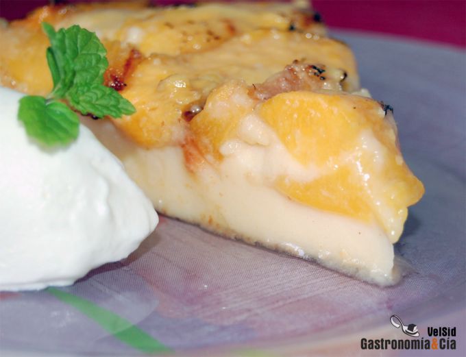 Con esta Tarta de nectarinas vas a conquistar a tus comensales, es una forma de disfrutar comiendo fruta de temporada y una tarta cremosa, suave y fresca, muy adecuada para estos días. Su elaboración es de lo más sencilla, del estilo de la Tarta de queso y del Clafoutis, con poca harina y poca grasa, haciendo que no resulte una tarta pesada.