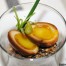 Separar la clara de la yema de huevo de codorniz y colocar en el centro del molde, para terminar (opcionalmente), disponer finas anillas de la aceituna Manzanilla que será nuestra protagonista en la receta.