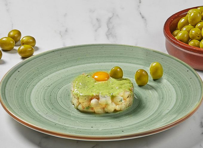 Recuperamos una de las recetas con las que los cocineros han participado en la puesta en valor de la aceituna de mesa en colaboración con Interaceituna, porque además de ser un delicioso y saludable alimento, la aceituna puede dar mucho juego en la cocina, y un nuevo plato que podemos probar y en el que podemos incorporar el fruto del olivo es este Tartar de gamba blanca con pesto de aceituna manzanilla y yema de huevo de codorniz de Pepa Muñoz, chef del restaurante El Qüenco de Pepa y presidenta de FACYRE (Federación de Cocineros y Reposteros de España). No os va a resultar nada complicado seguir esta receta paso a paso, además, podéis adaptarla a vuestros gustos y a vuestro mercado, por supuesto.