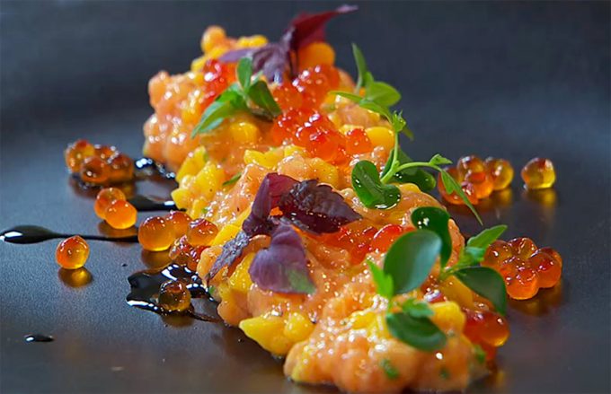 En la sección ‘Recetas de los Chefs’ tenéis hoy un plato que, además de encantaros, os va a resultar muy fácil elaborar en vuestra cocina, es un Tartar de salmón y mango con toque Torres, así que ya podéis empezar a tomar nota de los ingredientes que necesitaréis y de hacer los preparativos previos, pues ya sabéis que la recomendación cuando se consume pescado crudo, es congelarlo a -20º C durante cinco días, podéis leer más sobre este tema pulsando aquí.