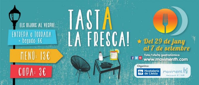 Hoy da comienzo una nueva edición de las jornadas gastronómicas que se van a desarrollar durante todo el verano en Lérida, hablamos de TastA la Fresca, una iniciativa de Hosteleria de Lleida y Moviment H – Gastronomia de Lleida que invita a las familias y a los amigos a salir a ‘tomar el fresco’ a las terrazas de los establecimientos de hostelería participantes, con unas tapas y platos ligeros y de temporada.