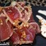 Por separado, cortar tomate concasse y mezclar con los cubos de salsa de tomate, aceite de oliva, albahaca y cebollino picado. Cortar la pechuga de pollo en ‘bastones’ y espolvorear con shichimi y sellar con aceite todas sus caras en una sartén, para terminar la cocción en el horno a 170º C. Mezclar la flor de sal con el wasabi en polvo.
