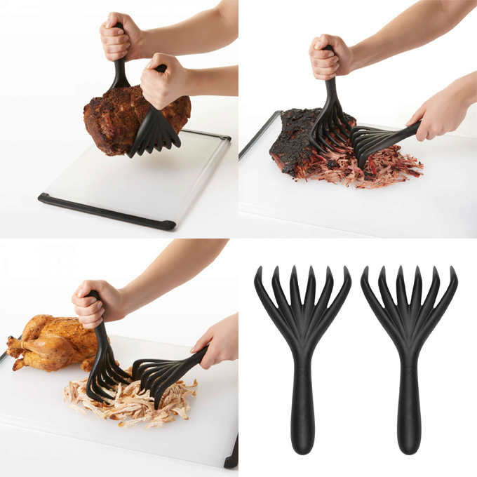 Sobre los consejos para desmechar carne, se trata de coger dos tenedores, uno en cada mano, para desgarrar la carne tirando de cada uno en sentido contrario, siendo una tarea sencilla y más eficaz que andar cortando con el cuchillo o las tijeras. Pues bien, en las fotos que compartimos aquí podéis conocer unas nuevas herramientas para desmechar carne que ha lanzado OXO, se llaman Meat Shredding Claws.