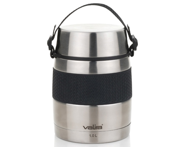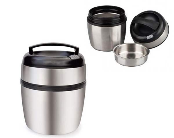 Está fabricado en acero inoxidable con doble pared para mantener el mayor tiempo posible la temperatura, al menos durante 12 horas. Consta de tres piezas y se pueden conservar en él dos comidas diferentes, pues está el recipiente principal, una pequeña fiambrera, que además se puede introducir en el congelador o en el microondas si fuera necesario, y la tapa.