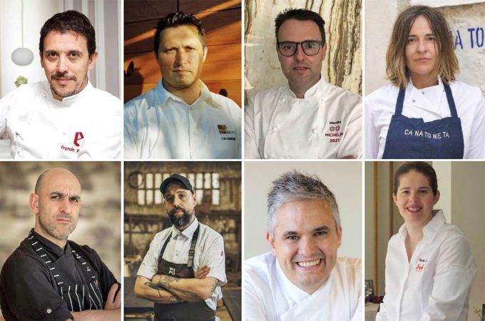 De la península y de otras islas hay también una gran representación de cocineros rurales, tomad nota: Francis Paniego (El Portal de Echaurren**, Ezcaray, La Rioja), Kiko Moya (L’Escaleta**, Cocentaina, Alicante), Fran Martínez (Maralba**, Almansa, Albacete), Álvaro Salazar (Voro**, Canyamel, Mallorca), Maria Solivellas (Ca Na Toneta, Caimari, Mallorca), Luis Alberto Lera (Lera*, Castroverde de Campos, Zamora), Nandu Jubany (Can Jubany*, Calldetenes, Barcelona), Edorta Lamo (Arrea!*, Santa Cruz de Campezo, Álava), Miguel Ángel de la Cruz (La Botica*, Matapozuelos, Valladolid), Ricardo González Sotres (El Retiro*, Pancar, Llanes, Asturias), Elena Lucas (La Lobita*, Navaleno, Soria, Castilla y León), Nacho Solana (Solana*, Ampuero, Cantabria), Alejandro Hernández (Versátil*, Zarza de Granadilla, Cáceres), Joan Capilla (L’Algadir del Delta*, Poblenou del Delta, Tarragona), Enrique Pérez (El Doncel*, Sigüenza, Guadalajara), Xune Andrade (Monte*, San Feliz, Asturias), Samuel Moreno (El Molino de Alcuneza*, Sigüenza, Guadalajara), Iris Jordán (Ansils, Ansiles, Huesca), Juan Carlos García (Vandelvira*, Baeza, Jaén), Roberto Ruiz (Hika Gastronomiko, Villabona, Gipuzkoa), Óscar García (Baluarte*, Soria, Castilla y León), David Pérez (Ronquillo, Ramales de La Victoria, Cantabria), Pedro Martino (Martino, Caces, Asturias), Pepe Ron (Bar Blanco, Cangas del Narcea, Asturias), Diego Schattenhofer (Taste 1973*, Arona, Tenerife), Miguel Carretero (Santerra*, Madrid, España) y Josetxo Souto & Ramón Aso (Callizo, Aínsa, Huesca).