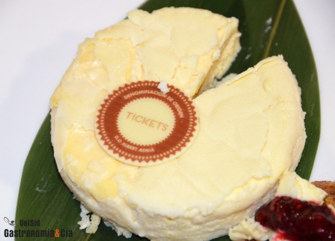Antes os hemos hablado del Queso de Tickets. D.O. Albert Adrià, este es un ejemplo de un clásico salado adaptado al mundo dulce. Es otro postre que podremos hacer en nuestra cocina para sorprender a nuestros invitados en alguna ocasión. Bajo la apariencia de un queso plano y redondo, se esconde una tarta de queso. Se elabora con queso crema tipo Philadelphia, nata, huevo, queso Brie, algo de harina, agua, gelatina y azúcar.