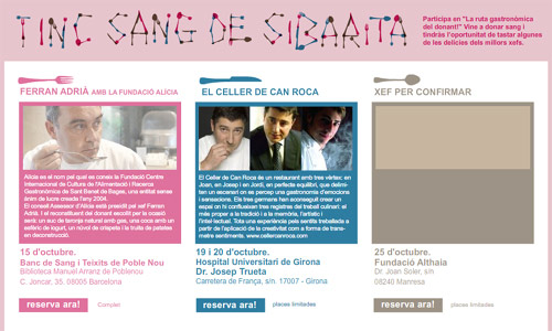 Las primeras noticias que nos llegaron sobre la campaña Tinc Sang de Sibarita (Tengo Sangre de Sibarita), anunciaba días concretos y centros hospitalarios de Barcelona en los que los donantes de sangre, en lugar de recibir tras la donación los zumos y bocadillos habituales, recuperarían fuerzas con platos creados por grandes cocineros de la ciudad condal, como fueron Fermí Puig, Ada Parellada y Fabián Martín.