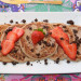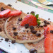 Continúa con la misma operación hasta terminar la masa, recordando engrasar la sartén de vez en cuando. Mientras se van haciendo las tortitas, lava y corta las fresas de la decoración en láminas, y pica el chocolate a cuchillo.