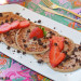 Sirve las tortitas de fresa y plátano en un plato y decora con las fresas al gusto. Para terminar, reparte la onza de chocolate negro troceada. ¡Buen provecho!