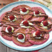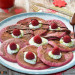 Sirve las tortitas red velvet en los platos y añade los toppings, un poco de yogur griego endulzado al gusto, las frambuesas, la salsa de chocolate y el polvo de coco y té matcha. ¡Buen provecho y feliz Año Nuevo!