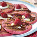 En repostería llama mucho la atención el denominado Red Velvet Cake, también conocido como Pastel de Terciopelo Rojo, un pastel de capas cuya historia muestra algo totalmente distinto a lo que hoy en día se hace, que es teñir un bizcocho con colorante alimentario, pero de esto hablaremos otro día. Queremos empezar el año compartiendo con vosotros una receta de desayuno saludable inspirada en este tipo de repostería ‘terciopelo rojo’ (pues se hace de todo con la apelación ‘red velvet’), pero con ingredientes naturales. Aquí tenéis nuestra receta de Tortitas de avena, frambuesa y remolacha acompañadas de unas gotas de yogur y salsa de chocolate.