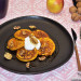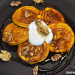 Sirve las tortitas de calabaza con su toque de nuez moscada acompañadas al gusto, yogur griego o labneh, frutos secos, sirope de chocolate, mermelada, canela en polvo, fruta fresca… el resto ya lo conoces, lo vas a gozar. ¡Buen provecho!