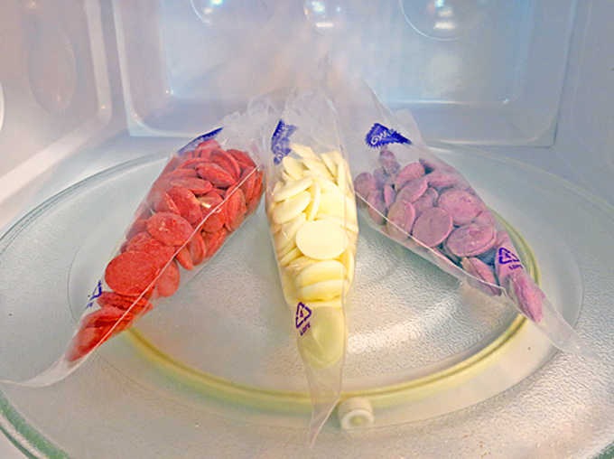 El truco lo explican en el blog de Wilton, pero claro, ya se puede ver en muchos blogs de cocina, repostería y pastelería, pues los buenos consejos hay que difundirlos para que lleguen a más personas. El truco para derretir Candy Melts® está especialmente indicado para cuando se utilizan para decorar, con lo que normalmente se debe utilizar una manga pastelera.