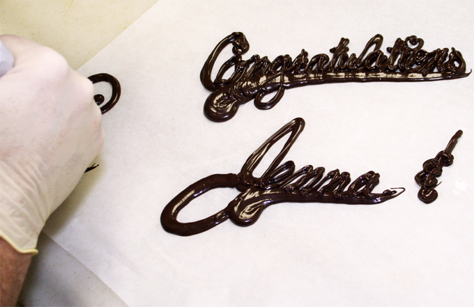 Buenas tardes, esa técnica de escribir sobre el pastel, sirve para escribir sobre una tableta de chocolate?gracias.