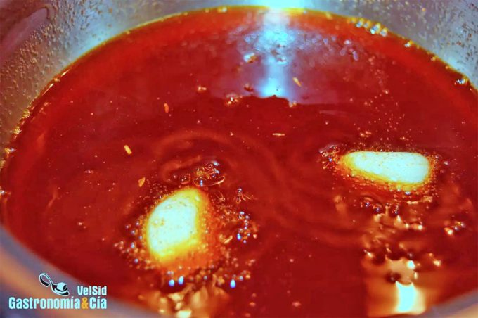 Al incorporarla a la sartén, el pimentón recibirá calor suficiente para desprender todo su aroma y sabor, pero no se quemará porque habrá líquido que deberá evaporar. Claro, que no hay que dejar que se seque del todo, simplemente hay que sofreír o rehogar la pasta de pimentón hasta que desprenda su aroma y se aprecie ligeramente más oscuro, y continuar añadiendo los ingredientes necesarios para hacer el guiso.