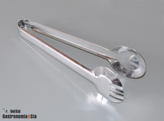 Y es que el truco es ese, cortar y servir un pastel con las pinzas de la ensalada o alguna similar. Ahora bien, no todas las pinzas de este estilo son apropiadas, por ejemplo, las nuestras no sirven porque no tienen el canto liso, está curvado hacia adentro para que el agarre sea más amable con las manos, y si no es una tarta muy muy tierna, lo que conseguiríamos sería destrozar el bizcocho.