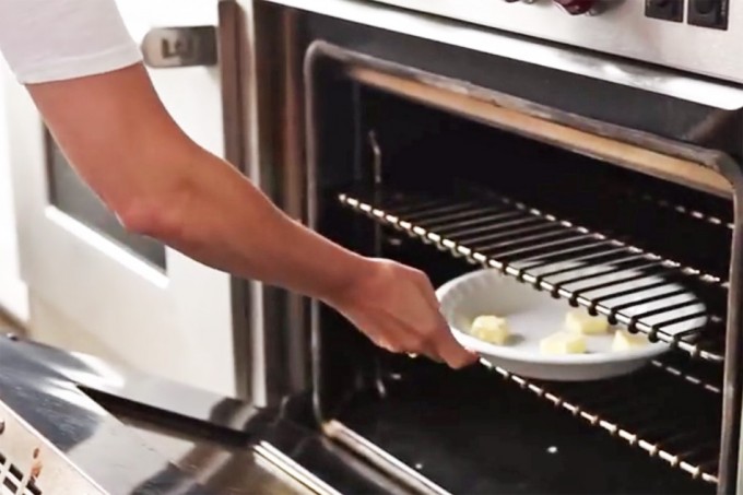 Al introducir la mantequilla en el horno cuando éste se enciende, el calor es suave y fundirá la mantequilla lentamente, ahora bien, hay que estar pendiente y retirarla en cuanto se haya fundido, pues de lo contrario se irá tostando, pudiendo obtener la denominada mantequilla avellana o beurre noissete.