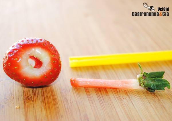 Según lo larga que sea la caña se pueden ir descorazonando varias fresas poniendo unas detrás de otras, aunque si no hay mucha prisa, se puede ir retirando el corazón de la fresa de la cañita a medida que se va retirando. Si no conocíais este truco, probadlo y comentadnos cómo os ha funcionado.
