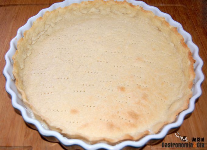 Cuando vamos a hacer una tarta con una masa seca, tipo masa de hojaldre, masa quebrada, etc., según la receta que se quiera elaborar previamente hay que darle un horneado en blanco. Si no conocéis qué significa, os recordamos que lo comentamos en este post, y que básicamente consiste en hornear la masa una vez puesta en el molde pero sin el relleno, sea porque éste humedece la masa e impide que quede crujiente, porque necesita menos tiempo de cocción el relleno que la masa o porque el relleno no deba hornearse, por ejemplo, que sea de fruta fresca.