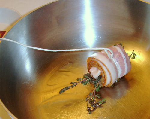 Bien Gregorio, pues en principio te recomendaríamos utilizar el bouquet garni tradicional sin la panceta, siempre que no quieras que el guiso tome más grasa que la que incorpores al rehogar las verduras, carnes o lo que utilices para hacerlo. El bouquet de la foto pretende mostrar el truco del hilo, pero resultará muy rico si lo que deseas es que el guiso adquiera el sabor de la panceta, es únicamente una loncha, y no va a provocar tanto excedente de grasa.