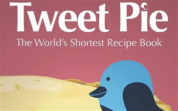 Bajo el subtítulo «El libro más corto de recetas del mundo» (The World’s Shortest Recipe Book), se ha puesto a la venta Tweet Pie, un libro de recetas de cocina que se han extraído exclusivamente de las sugerencias proporcionadas a través de los usuarios de la red social Twitter. En el libro encontramos más de 200 recetas explicadas sólo con 140 caracteres, evidentemente es poco material para encuadernar, por lo que en el libro también se han incluido las ilustraciones que los usuarios participantes en la iniciativa han enviado a través de la red social.
