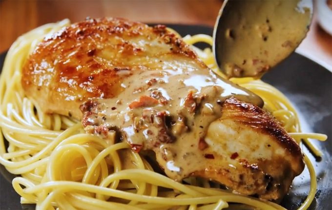 Y, ¿qué lleva esta receta de pollo para estar tan rica? ¿Cómo se hace el ‘Pollo cásate conmigo? Pues es sencillo, lleva pechuga de pollo, ajo, tomillo, tomates secos, caldo de pollo, nata o crema de leche, parmesano, albahaca… Se empieza cocinando en la sartén y se termina en el horno, y como podéis imaginar, el resultado es bueno, un plato muy rico, sabroso y nutritivo.