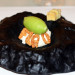 La morcilla es un trampantojo elaborado con sepia y su tinta, deliciosa, y se acompaña de un sabroso y potente jugo de porc negre, el cerdo autóctono de Ibiza que se equipara a la raza ibérica. Es muy sabroso, como lo son las setas shiitake que, además, gustan por su textura. Se completa el plato con el contraste crujiente, fresco y ácido del rábano daikon y la manzana verde (son las bolitas obtenidas con una cuchara parisien). Por cierto, el citró de matances es pimentón dulce, un condimento típico que se elabora con una especie local de pimientos y forma parte de muchos platos de la gastronomía ibicenca.