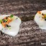 Salsear el usuzukuri de mero con el mojo verde y añadir unas gotas de salsa de soja.