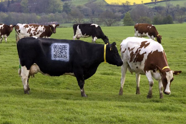 Jane y Barnes Marcos son los propietarios de una granja del Reino Unido que han tenido la idea de pintar códigos QR en un dorso de las vacas. Los visitantes utilizan los dispositivos de captura de imágenes presentes en tablets o smartphones para leer el código y automáticamente les conduce a la página web de la granja. En ella se informa sobre el trato que se profiere a los animales, cuántas veces son ordeñadas, qué tipo de alimentación reciben, y en general, todo tipo de información sobre el día a día en la granja.
