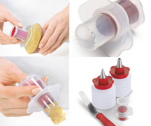 Respondiendo a varias consultas sobre los utensilios o accesorios para la elaboración de cupcakes caseros, y ampliando así la información y opciones de estos pequeños pastelillos que tan de moda están, aquí os dejamos algunas ideas para aumentar los recursos prácticos para la repostería en la cocina doméstica, como el vaciador de cupcakes o cupcakes corer.