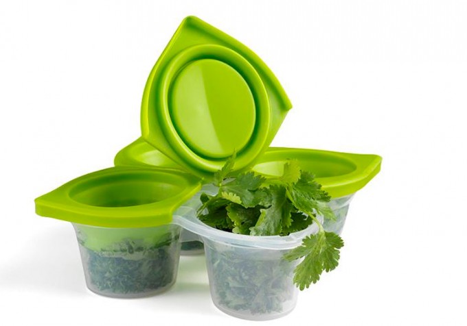 Imaginamos que se han basado en este concepto de conservación de las hierbas aromáticas para crear los cubiletes que podéis ver en la foto que ilustra estas líneas, con el nombre de Spice Cube Herb Freezer Tray, la firma de utensilios de cocina Chef’n nos presenta esta bandeja con cuatro vasitos unidos y con su correspondiente tapa, ideales para congelar hierbas aromáticas frescas.