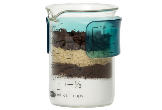 El principal objetivo de este accesorio en los vasos medidores es poder medir varios ingredientes en el mismo recipiente sin tener que ir vaciándolos en otro o sin necesidad de tener varios vasos para medir. Gracias a la banda deslizante, una vez que se ha vertido un ingrediente, sólo hay que desplazarla hacia arriba para empezar a medir de cero, podríamos decir que es como la ‘tara’ de una báscula.