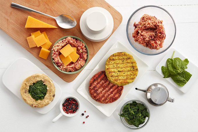 Pero como sabemos que a muchos no os convencerá esta respuesta, sino que queréis conocer moldes o accesorios que os ayuden a dar forma y prensar bien la masa con la que vais a hacer las hamburguesas. Cuando veáis nuestras recetas, aunque normalmente las hacemos con las manos, podréis ver también este molde para mini hamburguesas y para hamburguesas rellenas que usamos de vez en cuando, pero debemos decir que la misma marca ha lanzado un nuevo molde para hamburguesas vegetarianas enmarcada en su gama de productos para cocina ‘veggie’.
