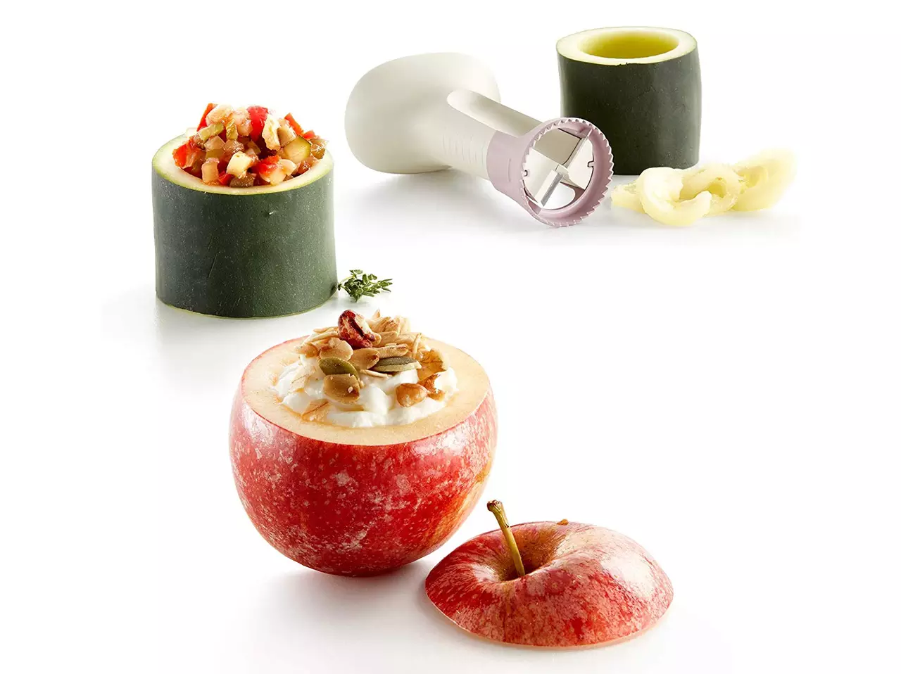 Hacer que las verduras, hortalizas y frutas resulten de lo más apetecibles es cada vez más fácil, hay mucha inspiración a la hora de buscar recetas en internet, además de que existen utensilios de cocina que sólo por su funcionalidad, ya son fuente de inspiración, basta con ver las imágenes con las que se presenta Veggie Cup, el vaciador de hortalizas y frutas para hacer ‘vasitos’ rellenos que acaba de lanzar la firma española Lékué.