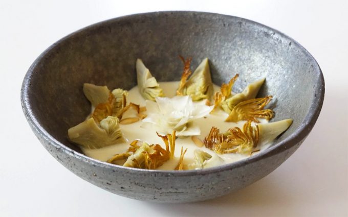 El caso es que esta es una de las recetas que los hermanos Roca propusieron en la caja de suscripción ‘Gastronomía Sostenible’, y los productos estrella son las alcachofas navarras, el mencionado queso gallego y los piñones de Pedrajas de San Esteban (Valladolid). El resultado es una magnífica Velouté de alcachofa con flor de alcachofa, piñones y queso Galmesano, y no sólo será un disfrute para los comensales, los que adoramos cocinar también podremos poner en práctica diversas técnicas de cocina. No os perdáis esta receta del chef que, además, podéis ver en vídeo a continuación.