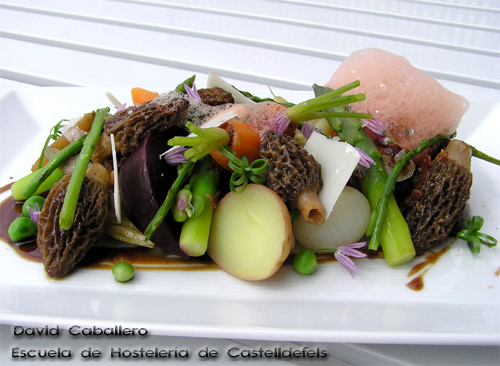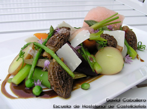 La representación de un plato de productos de temporada la tenemos en esta receta de Verduras primaverales de mi huerta, colmenillas y jugo de asado, una creación del profesor de cocina del restaurante L’Aula de la Escuela de Hostelería de Castelledefels, David Caballero, que hoy comparte con todos nosotros en la sección de Recetas y cocina de escuela.