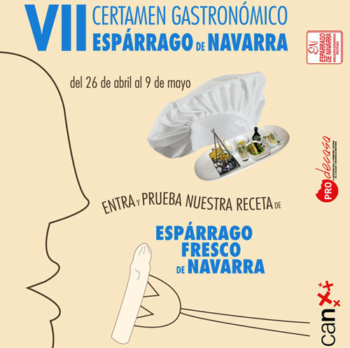 Del 26 de abril al 9 de mayo se celebra el VII Certamen Gastronómico Espárrago de Navarra, un evento que ensalza en plena temporada la calidad y cualidades de uno de los productos estrella de la Comunidad Foral. El certamen dedicado al Espárrago Fresco de Navarra es una iniciativa de la Asociación para la Promoción y Defensa de la Calidad y Seguridad Alimentaria (Prodecasa), Caja Navarra y el Consejo Regulador del Espárrago de Navarra, que como sabemos, goza de la Denominación Específica desde 1986 y de la Indicación Geográfica Protegida (I.G.P.) desde 2003.
