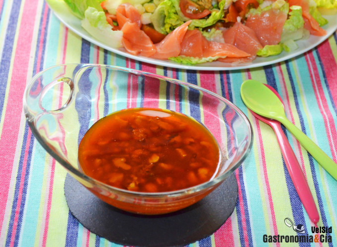 El caso es que hemos preparado una de nuestras ensaladas y hemos pensado que os gustaría probar la vinagreta tibia de mejillones en escabeche en alguna de vuestras recetas de ensalada con salmón ahumado, con gambas, con algas… Así que a continuación os explicamos cómo la hacemos, concretamente la versión de la vinagreta tibia, pues también se puede hacer más sencilla sin pasar ningún ingrediente por el fuego. De momento probad esta, y ya nos comentaréis si os ha gustado, seguramente disfrutar de una ensalada templada en esta época del año se agradece más que fría.