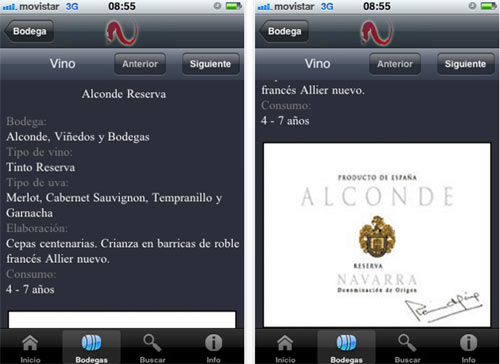 La aplicación cuenta con diferentes opciones, buscador por bodegas o marcas, listas por orden alfabético… en resumidas cuentas, podrás llevar en tu bolsillo y sin ocupar el espacio que ocupa una guía de papel o el ordenador, todos los vinos navarros y la correspondiente información. Puedes descargarte la App Vinos de Navarra en el iPhone a través de iTunes o a través de la Apple Store.