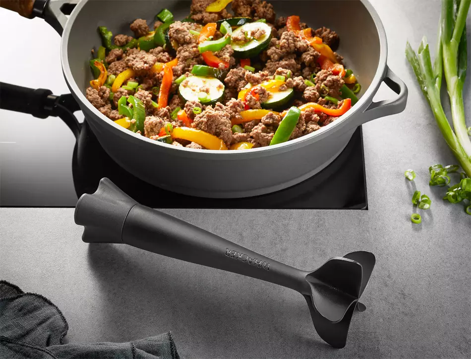 Pues bien, Whacker es otro modelo de picadora y mezcladora manual para carne picada y que también es muy útil para otras preparaciones culinarias, como para hacer un guacamole, desmigar un bloque de queso feta (u otros quesos tiernos y frescos), hacer puré rústico de patatas o de cualquier otra verdura… Podéis ver estos ejemplos en el siguiente vídeo.